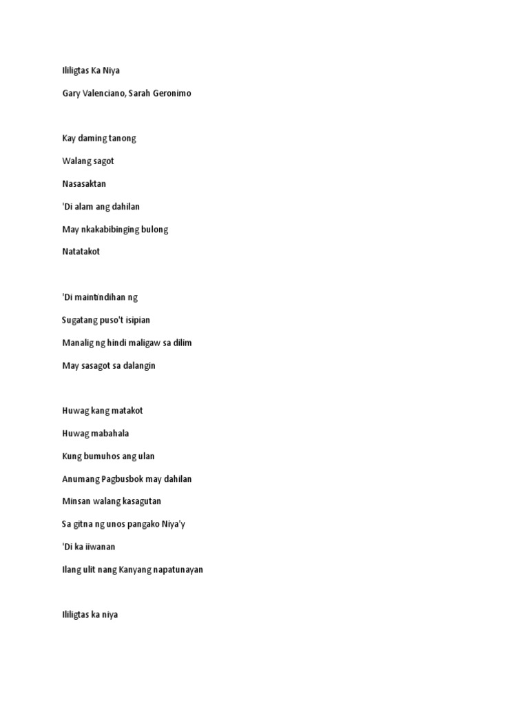 Verse 2 Gmaj7 Cmaj7 Akala ko ay cool ako Gmaj7 Cmaj7 May. Em C Hindi bat sabi ko sayong pigilan mo na yan Em C. Huwag kang matakot Huwag mabahala Kung bumuhos ang ulan Anumang Pagsubok may dahilan Minsan walang kasagutan Sa gitna ng unos pangako Niyay Di ka iiwanan Ilang ulit nang Kanyang napatunayan Ililigtas ka niya Iiligtas ka niya Minsan nwawalan ng loob Susuko na tila nakalimutan Na hindi siya nang-iiwan Sa ingay ng mundo Pangako niyay Di nagbago Tanggapin mo ng buo sa iyong.