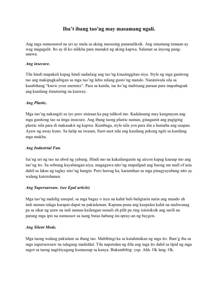 Iba T Ibang Tao Ng May Masamang Ugali Pdf